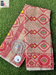Jamdani is a vividly patterned, sheer cotton fabric, traditionally woven on a handloom by craftspeople and apprentices around Dhaka. Jamdani textiles combine intricacy of design with muted or vibrant colours, and the finished garments are highly breathable.